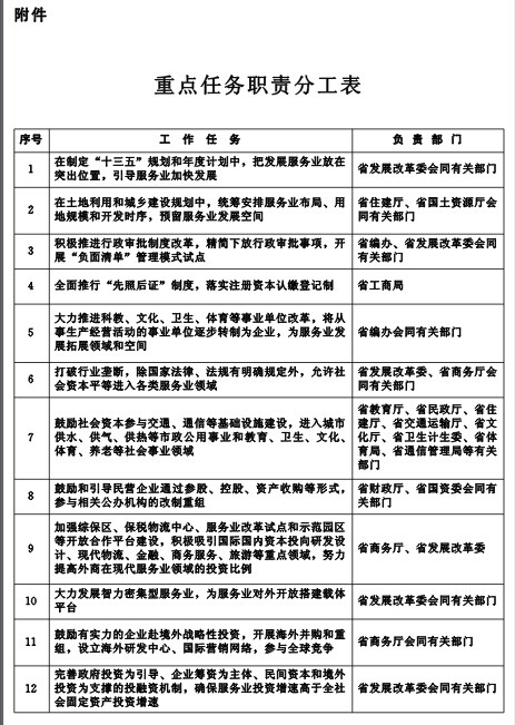 2、坚持突出重点。根据我省产业发展现状和服务业发展趋势,优先发展基础条件好、产业优势明显、带动作用强、发展前景广阔的重点行业和事关全省产业发展的关键领域、薄弱环节。