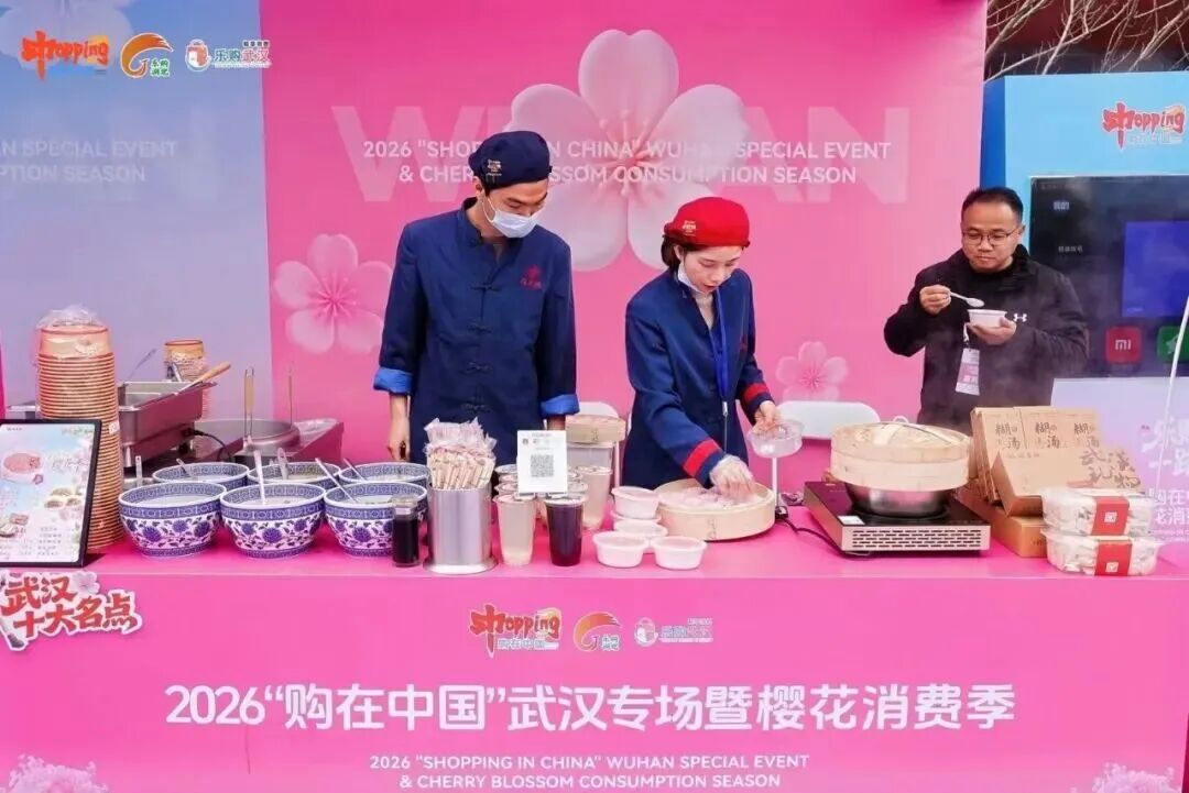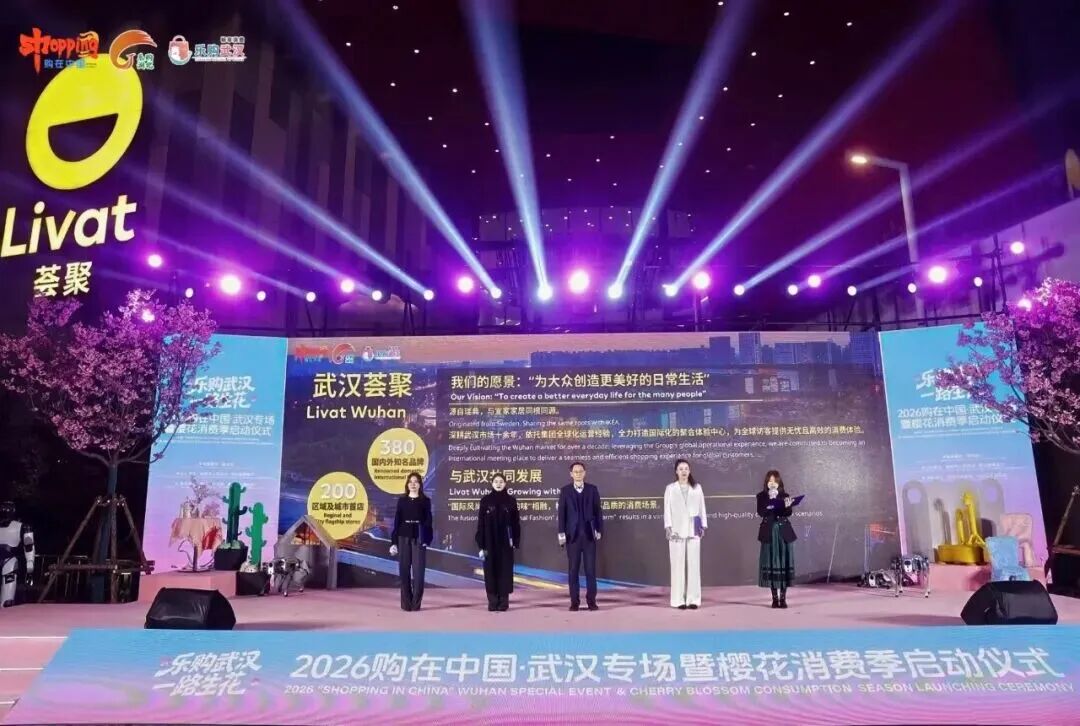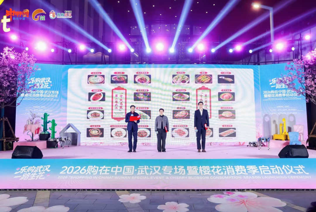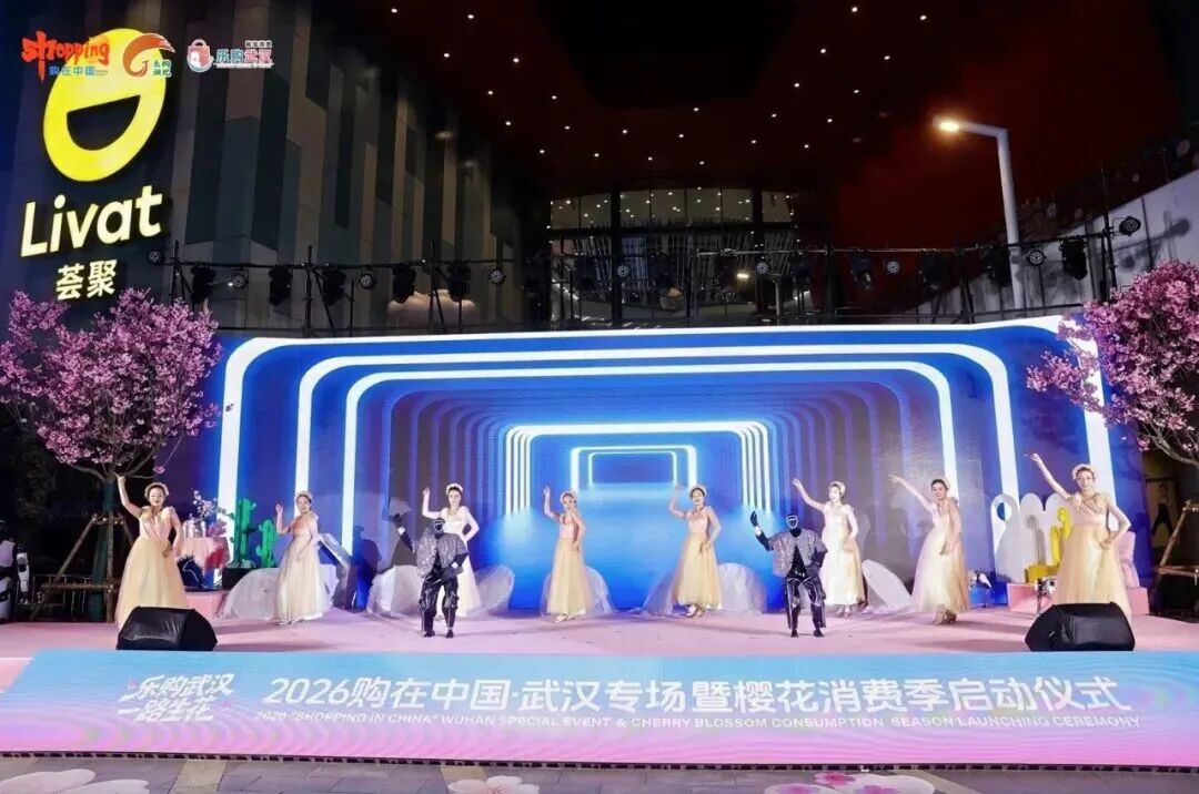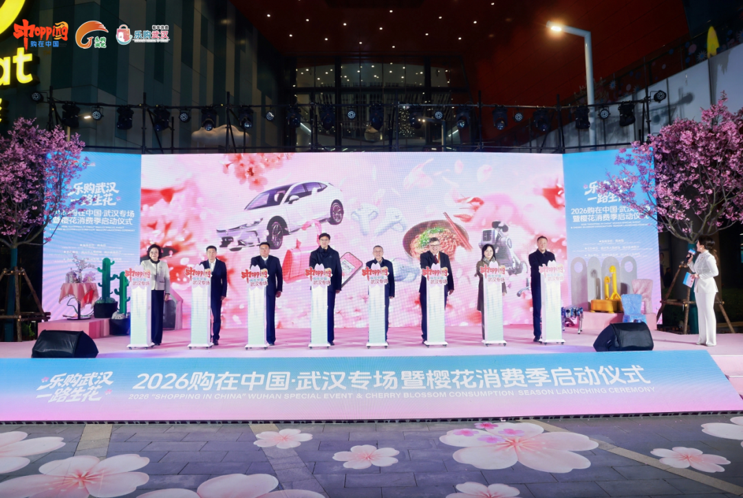 3月20日晚,2026“购在中国”系列首个城市专场活动——购在中国·武汉专场暨樱花消费季启动仪式在武汉荟聚精彩绽放。本次活动由商务部指导,武汉市人民政府、湖北省商务厅主办,武汉市商务局、硚口区人民政府承办。以花为线、以城为景,打造一场融合国际视野与楚风汉味的消费盛宴,并以中英双语向全球推介和邀约,来武汉,赏樱、食味、乐购、潮玩,一路生花,点燃春季消费热潮。
