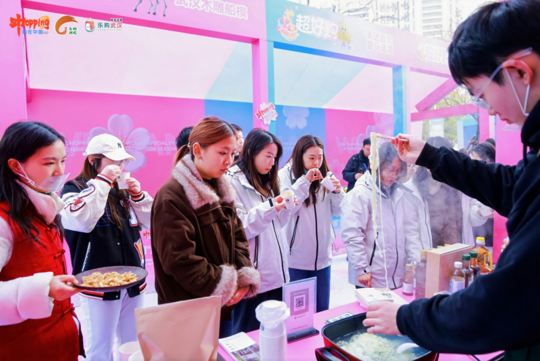 “超好吃”展区堪称舌尖上的樱花季,从宜家瑞典风味到俄式美食,再到现煮现卖的德华楼热干面、爷爷不泡茶奶油米酒……每一口都藏着春天的味道;在“超好购” 展区,天河机场“世界超市”精选爆款全球好物空降现场,享受 “机场免税店” 同款购物快乐;“超好玩”展区,苏恒泰油纸伞、楚韵铜雕、竹编风筝等非遗天团炸场,真快活娃娃机唤醒内心童真记忆;“超好逛”展区,小米生态、迪卡侬循环市集、优地机器人、云裳链AI仿生试衣机器人、NBA球星同款的Moti Physio身体评估仪等,充分展现前沿科技魅力。“以旧换新”展区聚焦绿色消费,家居焕新、潮车打卡一站式拿捏,以旧换新叠加商家优惠,性价比拉满。