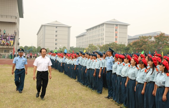 9月23日上午8点30分,我校田径运动场上彩旗飘扬,军乐嘹亮,我校2013级新生军训成果汇报大会暨开学典礼在此隆重举行。空军预警学院黄陂士官学校政委吕路平上校,我校领导彭秀春、张金隆、陈伟、陶梅生、向太斌、刘腾红、卢炎生、桂裕清、张俊、王程军,二级学院领导张金海、童光荣、李明、张兆学、陈敏、魏华、王海文、周强,学工部部长陈义文出席典礼。大会由校长助理、校办主任张俊主持。