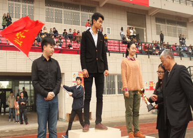 “海大人加油,海大人最棒!”“看,海大人又是第一!”在田径运动会上,文法学院学生们正在为该学院13级法学专业的海瑞呐喊助威,此次运动会他一人包揽男子100米、200米、4*100团体第一,跳远第三的好成绩,被大家誉为“工商小飞人”。男子组跳高预决赛中,13级法学专业的杨露以1.73米的成绩夺得的此次比赛的第一名。