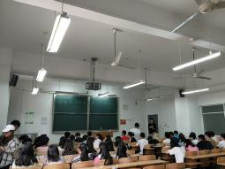 在会议开始前,成员们带着笔和笔记本陆陆续续进入教室,按部门有序坐好后,开始了今天的例会。例会第一项,各个部长清点自己部门人数。例会第二项,事业部,组策部,实践部,宣传部,公关部,网编部开始对上周所做的事情进行总结以及对要做的工作进行一系列安排。随后副会长上台讲话,副会长先对前期赞助的主负责人予以奖励,希望他可以继续努力,以此来激励其他部员,希望其他人也能够更加努力。之后副会长对接下来的工作进行了安排,5月31号到6月14日的系列活动,6月10号的龙舟志愿者活动,以及六月初的正式换届和6月1号省学联举办的最具活力大学生社团的投票活动。最后会长和成员们讲了6月1号的协会年度聚餐的安排, 希望成员都能积极参与。最后成员有序离场。
