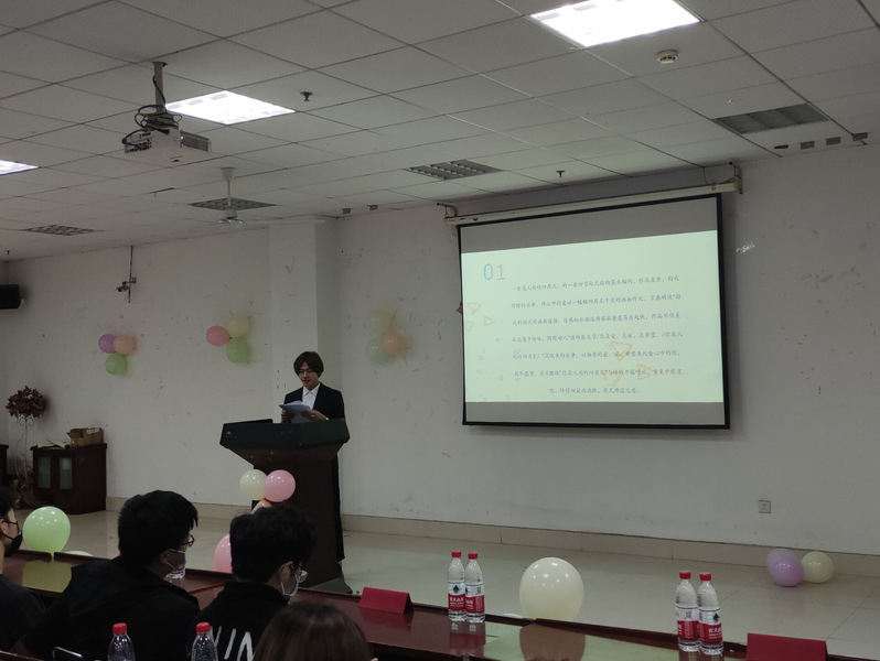交流会开始,编辑部的侯良燕同学与大家分享了阅读《人间草木》的感悟。她娓娓道来,介绍了汪曾祺的生平以及生活的时代背景,从而引出他朴实典雅、亲切隽永的文风。观众如痴如醉,逐渐走入汪曾祺的平凡世界。文章的字里行间流露出汪曾祺对凡人小事与乡土民俗的深深眷恋,更透露出他对生活的热爱与不断前行的勇气,启示观众们多去发现平淡的美好,积极面对生活。