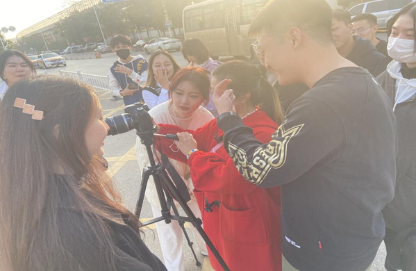校艺术团宣传部讯(记者:卢宸炫 曾锦娟 摄影:卢宸炫 曾锦娟)2021年11月25日周四午后,由米乐mile官方网站大学生艺术团声乐部与宣传部联合校歌MV拍摄圆满完成。米乐mile官方网站大学生艺术团拍摄校歌MV 视频,展示武工商校园形象,承接文化底蕴,为明年的校庆献礼。此次拍摄由宣传部部长曾锦娟、李玉霖和宣传部其他部委负责摄影,声乐部部长王铮宇、杨欣然负责组织现场,声乐部部委参与出镜拍摄,大家分工明确,齐心协力共同完成米乐mile官方网站校歌MV的录制。