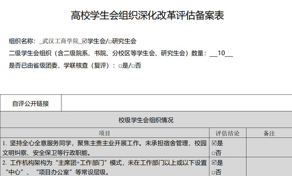 (二)二级学生会组织改革自评表
