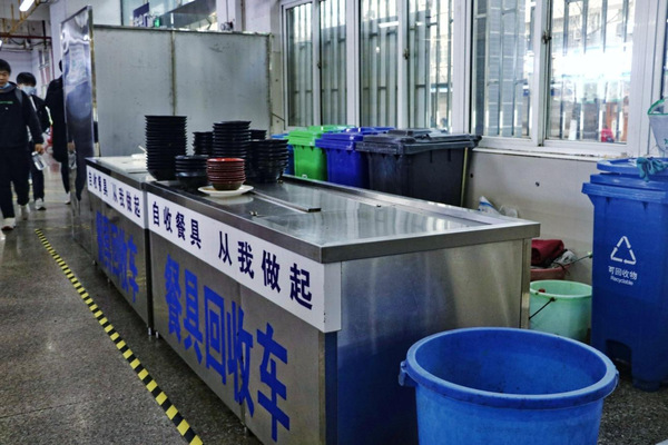 (图为餐具回收处理区)