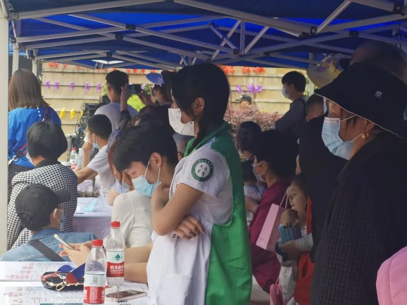 为居民量血压,白杨和刘晓彤和湖北经济学院青年志愿者协会会长共同负责的“量血压”板块,赢得了居民的广泛参与,社区居民张阿姨非常感谢大学生志愿者们走进社区,为居民献爱心。