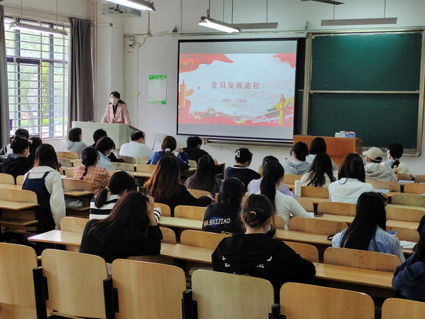 新闻学学生党支部(记者:游博涵)为进一步加强入党积极分子的教育管理,提高入党积极分子的责任感、使命感,4月20日中午12:30,文法学院广告与网媒联合党支部书记冯媛媛为第九期党校50名入党积极分子做“党员发展流程”的主题培训,会议在综合楼204教室举行。