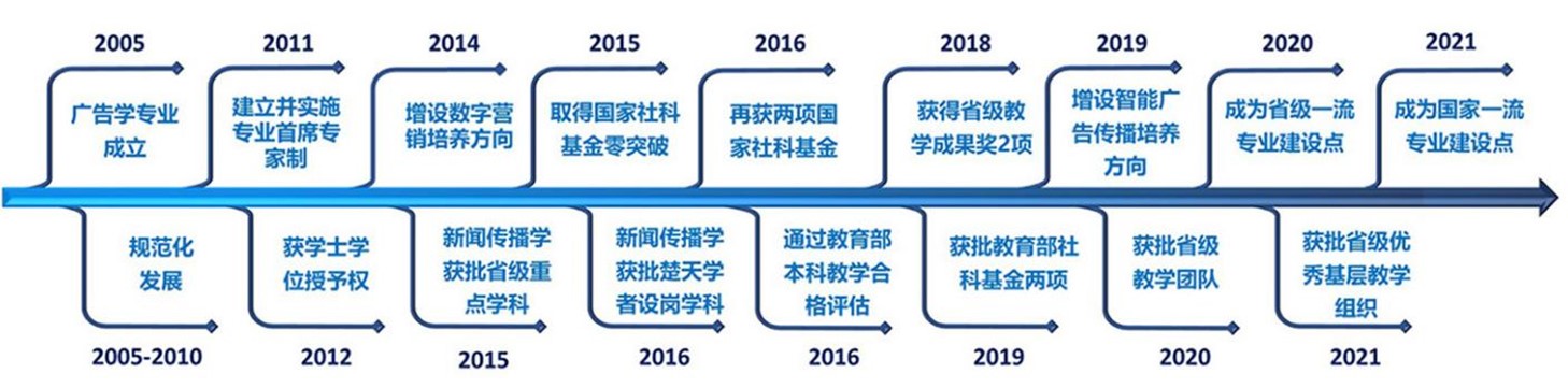 2013年,广告学专业所属新闻与传播学获批湖北省重点培育学科建设项目。