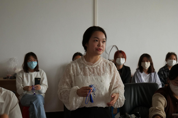 在本次活动的主题下,大家一起动手进行了香囊的制作,一场艺术细胞迸发的手工互动就此展开,其中有四位同学对自己的所制香囊的构思进行分享: