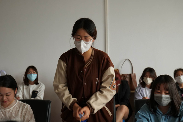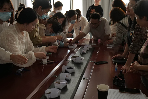 在活动开展期间商殷老师通过分享自己的理疗经历讲述了香囊中所用的各种香料药材的好处,并且分享了特意从中医药学会带来的特质精油,让每位同学都沉浸在这屡屡飘香当中,缓解生活和学习的疲劳。