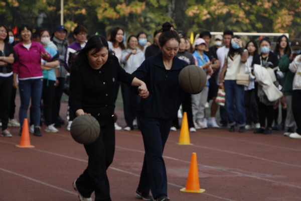 运动场上不仅有文法学子的身影,还有奋力拼搏的教工们,今天的他们让同学们认识了不同于讲台之上的老师,面对各种的运动项目,他们沉着冷静、斗志昂扬;面对同学们的关心鼓励,他们愈加坚定,最终取得了优异的成绩。螃蟹运球、运动绕杆跑等趣味比赛项目,给运动会增添了超多乐趣,在紧张刺激、争分夺秒的比赛氛围外,带给观众满满的欢乐和趣味。