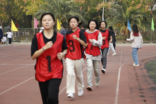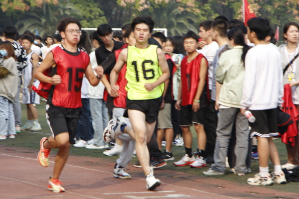 人生太短暂,少年不怕时光留遗憾。他们奔跑在赛道上,手中的接力棒一个接一个拿起;他们跳跃在绳索下,矫健的身影一个接一个跃起;他们拉起队友的手,手中的篮球滚滚向前。看过激情四射的100m、200m、400m,将视角转向1000m的赛道,长跑运动员们奋力向前、再累也没有让他们停下他们的脚步。再转向田赛运动场,跳高选手在步伐优美的助跑后,一跃,身体在空中划出一道弧线;跳远选手在阳光的照耀下,展示出蓬勃的力量,跳向沙坑的一端……挑战自我的精神,在赛场上一览无遗。赛场之外,同学们互相加油打气,其乐融融。