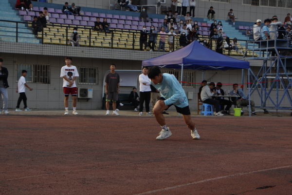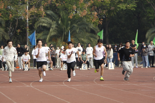 随后,运动会的各个项目依次展开。朝气蓬勃的脸庞、英姿飒爽的身影在同学们铿锵有力的加油呐喊声中展示出一道亮丽的风景。男女子100米、400米,铅球、跳高、跳远……每一个项目都闪现着文法学子们的矫健身影。随着发令枪响,衣角鼓动,热血沸腾,他们尽情挥洒着汗水,尽力在跑道上追赶着,都在为文法学院的荣誉而努力拼搏。来自五湖四海的同学都在操场上呐喊助威,不同的班级汇聚一体,一起拔河、跳绳、运球、奔跑……此时此刻团结是师生们一致的口号,他们团结一起,在操场上挥洒汗水、在跑道上奋起奔跑。他们都是无敌的少年,青春的朝气与蓬勃在他们身上展现。