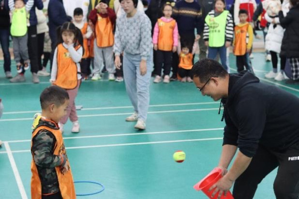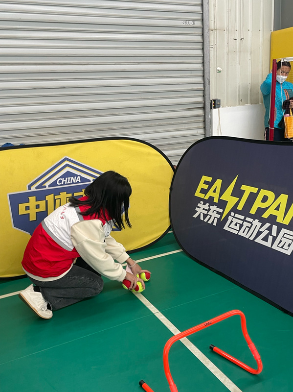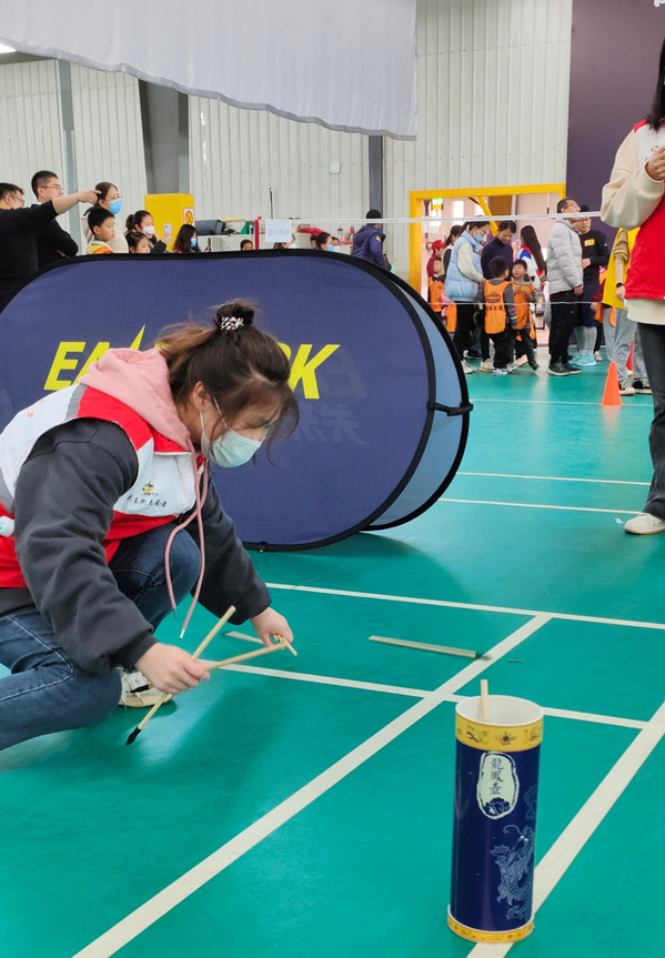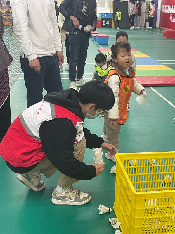我校志愿者分配到在门口的打卡牌处给小朋友和家长们进行拍照,并在活动进行时进行拍照,同时机动负责场馆活动器材的收捡。