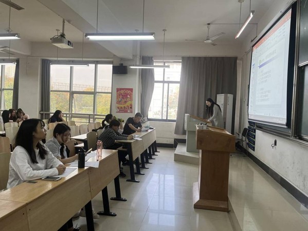 线上答辩结束后,新闻系老师分为两组同时进行线下毕业论文开题答辩。第一组由院长助理毛毅副教授担任组长,第二组则由汪明香副教授担任组长。77位线下答辩同学依次进行PPT展示,内容围绕选题依据、研究思路和框架、研究方法、参考文献等进行汇报,每位老师认真听取学生的论文开题报告,并就报告内容及细节进行了详细的提问和沟通。