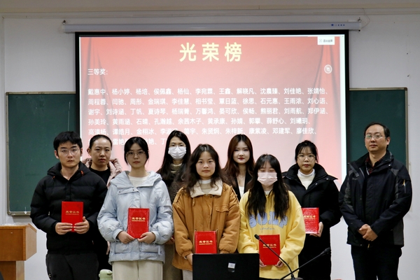 图4 系主任张威老师和陈媛媛老师为三等奖学生代表颁奖
