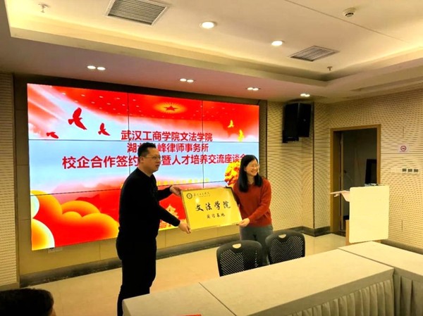 随后,湖北泓峰律师事务所主任李汉洪、律师代表胡锦鹏、刘松先后发言,结合自己业务领域及业务专长、从法律人才培养、实务课程开展、实践活动策划、实习律师成长发展等几个维度提出协同育人的构想。他们表示,很高兴有机会为高校法学教学与研究提供相关案例素材,愿意积极参与到学生的辩论赛、模拟法庭和实习就业指导等方面的工作中,期待学院和律所日后能够进一步细化合作细节,不断优化合作方案,共同培养出富有创新意识,具备较强实践能力的应用型法律人才。
