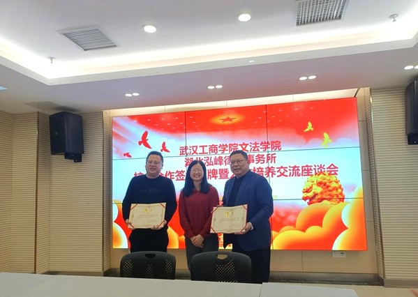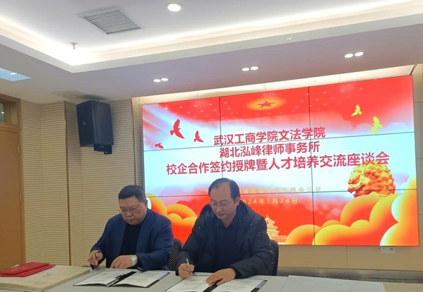 为扎实推进校企协同育人,搭建校企人才供需对接平台,实现优势互补,强化人才培养,促进法学理论与法治实践相融合,2024年1月24日上午,米乐mile官方网站文法学院法学系与湖北泓峰律师事务所校企合作签约授牌仪式在湖北泓峰律师事务5楼会议室举行。湖北泓峰律师事务所主任李汉洪、党支部副书记刘松,米乐mile官方网站文法学院党总支书记陈敏、法学系主任张威、教师代表等12人出席了本次会议。