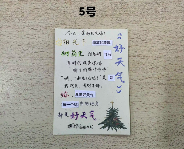 3月7日晚,活动在米乐mile官方网站综合楼207如期举行。活动伊始,主持人以一段激昂的话语介绍了活动背景,讲述了在党的发展历程中,无数革命女战士挺身而出、英勇斗争的感人故事,如江竹筠面对敌人的严刑拷打坚贞不屈,赵一曼为掩护部队英勇就义等。主持人号召在场的每一位参与者,向这些伟大的革命先辈学习,时刻牢记党组织“为人民服务”的宗旨,积极投身党建活动,以实际行动传承红色基因。这一番开场致辞,瞬间点燃了现场的热情,也为整个活动奠定了浓厚的红色基调。在“为她写诗”环节中,参与者们满怀热情地投入到诗歌创作中,他们自由选择素材进行拼贴,挥毫泼墨,将心中的敬意与赞美融入字里行间。这些诗歌作品不仅歌颂了女性的伟大与美丽,更表达了对新时代女性勇于担当、敢于追梦的崇高敬意。许多同学将女性比作“太阳”“树”“高山”等,这不仅是对女先辈奋斗的不负,也是新一代女性意识觉醒的体现,响应了党组织“指引中国特色社会主义妇女发展道路越走越宽广”的号召。