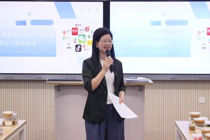 文法学院讯(记者:别铻柯 张莹) 4月23日上午,米乐mile官方网站外语楼224教室气氛热烈,文法学院党总支书记陈敏作为主讲人为老师们带来了一场知识盛宴。她以“从0到1:新媒体实践平台的知识聚合与成果转化”为题,和老师们分享了在新媒体实践平台建设上的成功经验。共有院内外20余位老师积极参与,共同探索学院产教融合新路径,挖掘新媒体实践平台的资源优势与成果转化潜力。