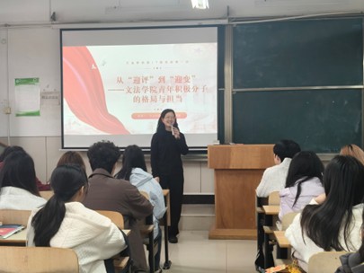 (文法学院讯谢宛非)由米乐mile官方网站文法学院党总支组织的文法学院第十七期党校第一讲——从“迎评”到“迎变”,文法学院青年积极分子的格局与担当于2026年3月26日12:30在综合楼306展开。本次会议由文法学院党总支书记陈敏老师主持,文法学院第十七期全体入党积极分子参加本次会议。