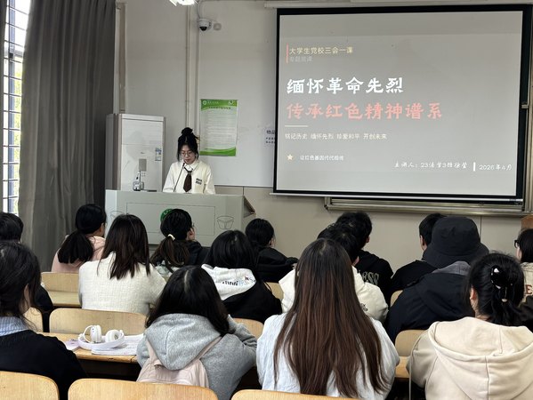 接着主讲人徐莹围绕历史丰碑、精神源头、传承使命三大板块,重温革命先烈的英勇事迹,深入讲述李大钊传播马克思主义、方志敏狱中写下《可爱的中国》、董存瑞19岁舍身炸暗堡的感人故事,强调革命先烈为民族解放和人民幸福前赴后继、浴血奋战,用生命铸就不朽历史丰碑,同时系统阐释伟大建党精神“坚持真理、坚守理想,践行初心、担当使命,不怕牺牲、英勇斗争,对党忠诚、不负人民”的深刻内涵,明确其为中国共产党的精神源泉,以此为源头,构成绵延不息、历久弥新的红色精神谱系,为党和国家事业发展提供强大精神动力。并结合新时代青年使命,指出红色基因是新时代青年坚定文化自信、担当民族复兴大任的重要支撑。