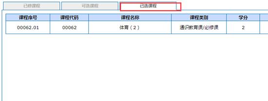 ①可选课程列表,点击右侧“选课”,确认提交,出现以下页面,即选课成功