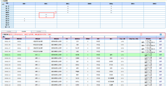 ②可选课程查询框,右侧为列表切换按钮,在每列上输入相关查询条件,点击左侧按钮查询相关信息,如下图所示: