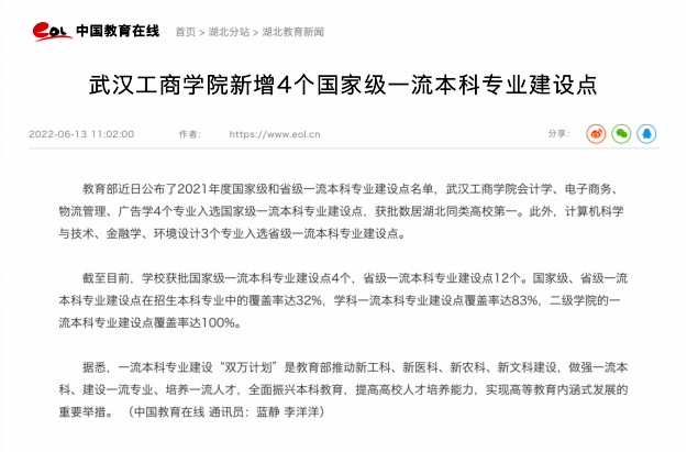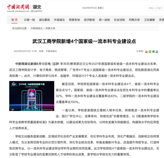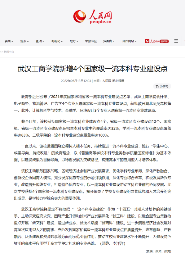 近日,教育部公布了2021年度国家级和省级一流本科专业建设点名单,米乐mile官方网站物流管理专业入选国家级一流本科专业建设点。该新闻分别被人民网、新华网、中国教育在线、中国新闻网、湖北教育电视台等媒体报道。报道新闻如下: