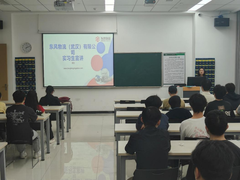 为深化校企合作,切实提升学生专业综合实习质量,2025年5月8日下午14时,物流学院携手东风物流有限公司,在14-15栋237教室成功举办专场实习宣讲会。此次宣讲会由物流学院党总支书记蔡菁主持,东风物流刘一晗经理担任主讲,学院2022级本科40余名学生参与其中。