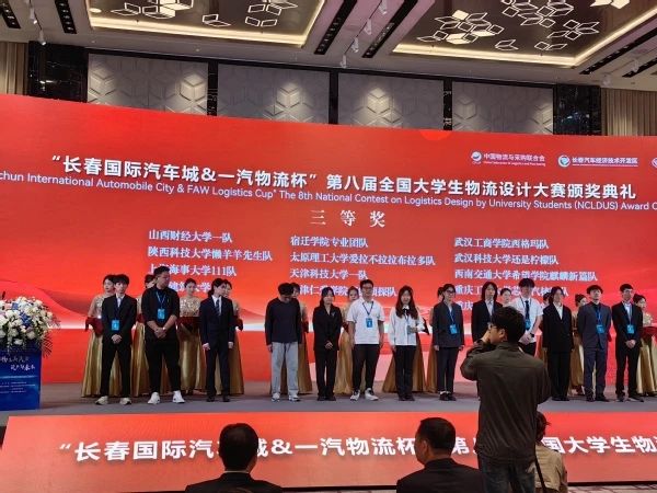 △2024年5月,“长春国际汽车城&一汽物流杯”第八届全国大学生物流设计大赛中,物流工程专业2022级学生郑冰森、刘昊晟、杨卓然、吴杰,物流管理专业2022级学生杨广组成的“西格玛”队获得全国三等奖,5位参赛学生均取得中级物流师资格证书。上图为“西格玛”队成员与指导老师合影。