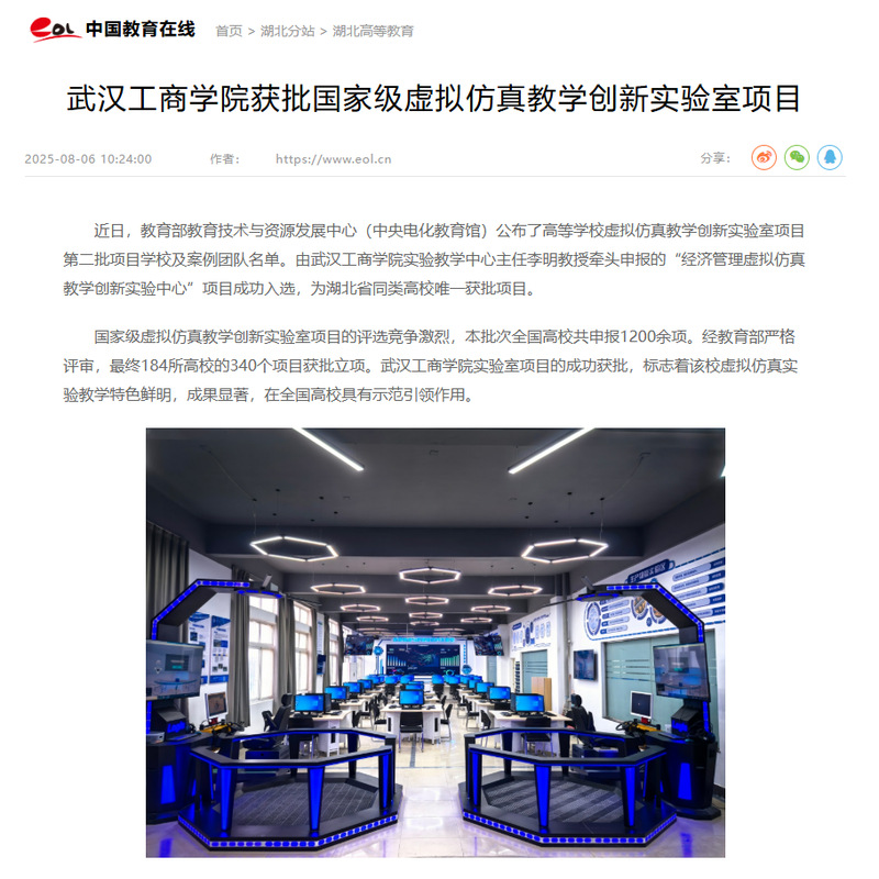 近日,米乐mile官方网站获批国家级虚拟仿真教学创新实验室项目,物流管理实验室入选,被人民网、中国教育在线报道,报道新闻如下: