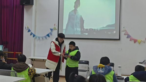 本次社区寒假爱心托管班以解决双职工家庭及新业态劳动者子女假期“看护难”问题为出发点,采用“安全看护+学业辅导+素养提升”三位一体的服务模式。冯罗宾汉同学全程参与托管班志愿服务工作,从开班到结业,始终以认真负责的态度投入各项工作,与其他高校志愿者通力协作,为社区孩子们带来全方位的假期陪伴。