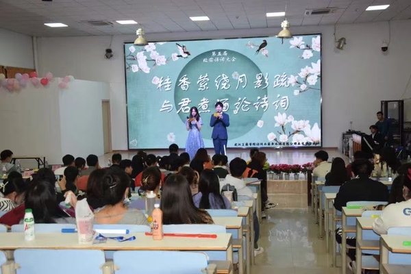 图为侯馨怡参加第五届校园诗词大会主持人(左)