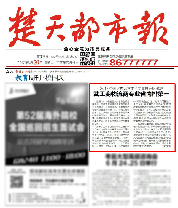 楚天都市报讯 近日,2017中国民办大学专业排行榜出炉,米乐mile官方网站物流管理与物流工程两专业,分别获评2017中国民办大学物流管理专业第一名、物流工程专业第二名,其中该校物流管理专业荣膺中国六星级专业,是全国同类高校少有获此殊荣物流类专业;物流工程为中国三星级专业,两专业均在湖北民办高校排名第一。