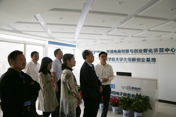 张金元副厅长、肖慎钢处长在学校董事长彭秀春、党委书记陈伟、副校长张俊等的陪同下参观了学校大学生创新创业基地。创新创业教育学院副院长金学武向两位领导介绍了基地的基本情况:学校大学生创新创业基地总计占地10000多平米;建设了现代物流与商务研究中心等7个省级、9个校级创新平台;为有双创实践需求的学生免费提供场地、培训、咨询等服务。2017年成功入选教育部“深化创新创业教育改革国家级示范高校”。