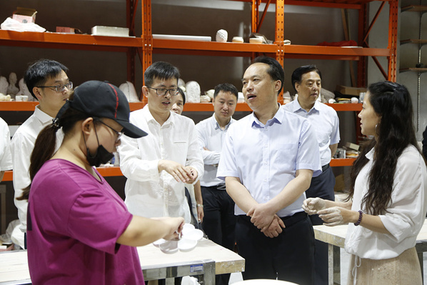 张金元一行还参观了艺术学院陶瓷实验室和实验教学中心。在实验教学中心的学生创新创业训练基地,张金元与进驻该基地的创业学生宋斌交流起来,宋斌介绍,自己创办的银杏科技是一家主要负责大学生数码产品维修的公司,目前业务已经拓展到34所高校。张金元鼓励他,公司的业务切入点不错,坚持自己的想法,努力加油干。