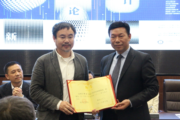 图为陈伟书记向罗成教授颁发特聘教授聘书 摄影:葛诗瑶