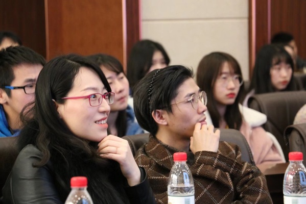 仪式现场,姓会创始人、摆谱创意总监张艺彬和武汉渔可得网络创始人马茵受聘为学校创客导师。马茵老师结合自己的设计经历,向艺术与设计学院师生分享了品牌形象IP的塑造方法和设计理念。她以莫愁村文化旅游项目为例,向现场师生展示了自己的指导作品《长滩焦切》,以及代表作《贪吃蛇大作战》的游戏界面设计和角色绘制理念。她谈到,“好的IP形象要让人有鲜明的记忆点,如天猫、京东的品牌形象简单、主题明确,但消费者一眼就能记住,这就是IP设计的关键。”