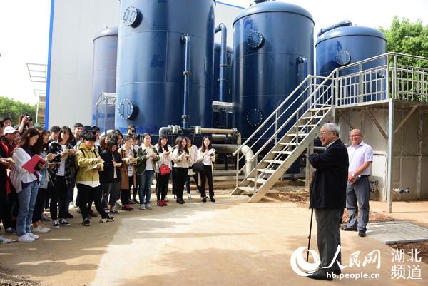 中国工程院院士李圭白为学生们讲解污水处理工艺 (熊名扬 摄影)