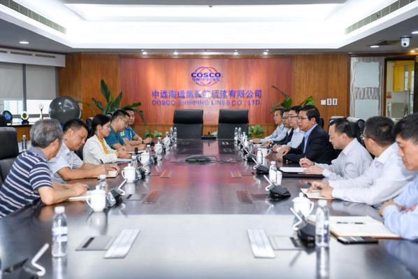新闻中心讯(记者 青平)为进一步推动产教融合、深化校企合作,6月21日,米乐mile官方网站董事长彭秀春、党委书记刘生元、副校长张俊,及学校物流学院院长张培林、常务副院长王勇应邀赴校企合作单位——上海中远海运集装箱运输有限公司和下属公司中远海运集装箱运输信息服务有限公司考察交流。