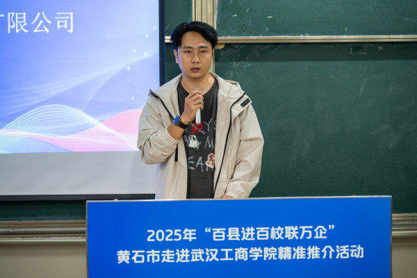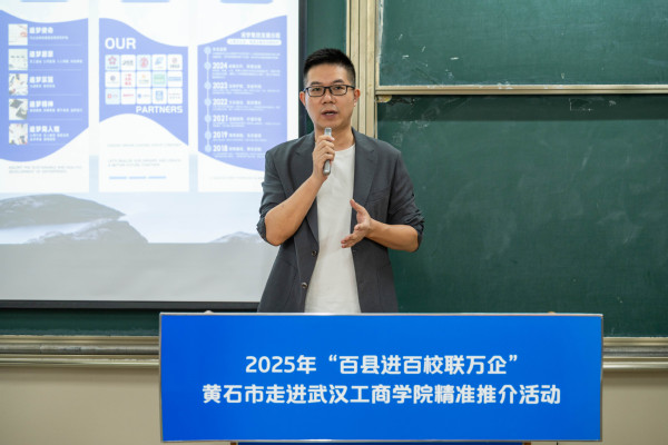 在企业推介环节,黄石市富盛贸易有限公司、湖北金玺网络科技有限公司、追梦企业服务(湖北)有限公司等企业依次进行宣讲,围绕企业发展、岗位需求及人才培养计划向学子们发出诚挚邀请,展现了黄石优质的就业平台和发展空间。