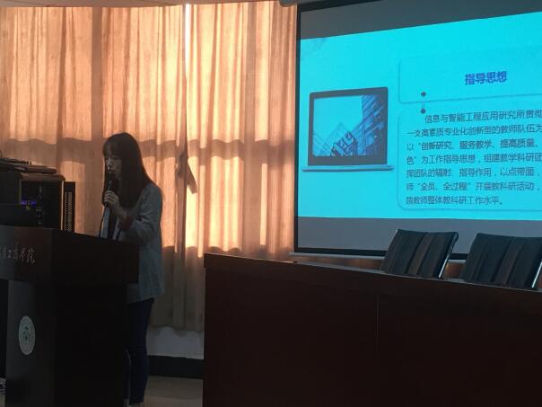 会议第三项,由学院信息与智能工程应用研究所所长李娟博士,就研究所一下步具体的工作设想和安排向全院教师进行讲解和汇报。