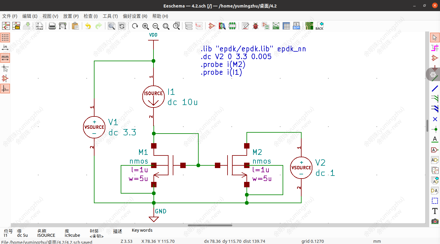 九同方EDA软件云服务用于《模拟集成电路设计》课程的实验教学,学生可以使用该软件进行电路原理图的绘制、电路参数的设置和仿真分析,直观地观察电路的工作原理和性能指标变化,可以利用软件进行从电路设计到版图绘制的全流程操作。因为是远程访问,存在网络访问不稳定的情况。下图是使用软件的界面:
