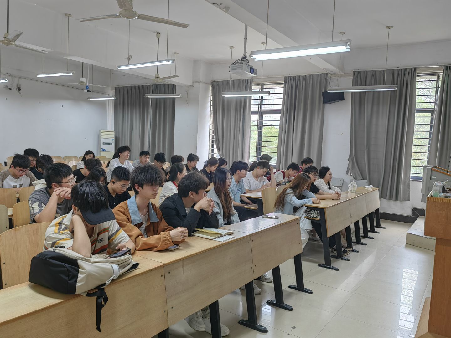 其次就是摄影技巧,要学会抓拍决定性的瞬间。这种照片虽然只有一瞬,但是能很好的抓住读者的眼球。在摄影技巧中提到学习构图技巧和光影技巧都是十分重要的。还通过日常实际案例讲述了照片如何去拍摄,让在场的同学更好的理解讲述内容。