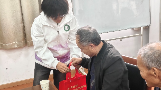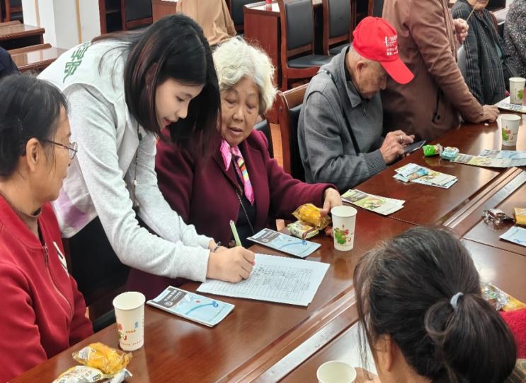 在健康养生知识普及环节,志愿者们没有照本宣科,而是结合老人的生活场景,用通俗易懂的语言讲解。他们重点提醒老人们秋冬季节保暖的注意事项:“出门时一定要戴好帽子、围巾,尤其是颈部和膝盖别受凉”“晚上睡觉被子要盖好,别因为天刚冷就舍不得开暖气”;针对秋冬常见的呼吸道问题,志愿者们建议 “每天开窗通风半小时,保持室内空气流通”“少去人多拥挤的地方,出门可以戴个口罩”;还分享了简单的居家养生方法,比如 “早上起来喝杯温开水,帮助肠胃蠕动”“饭后别马上坐下,慢慢走几分钟有助于消化”。遇到老人提问,比如 “我有高血压,秋冬要特别注意什么呀”,志愿者们结合提前了解的健康知识,耐心解答 “要按时吃药,定期测血压,饮食上少吃盐和肥肉”,切实为老人提供实用的健康指导。