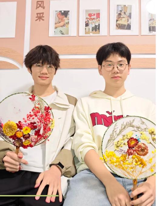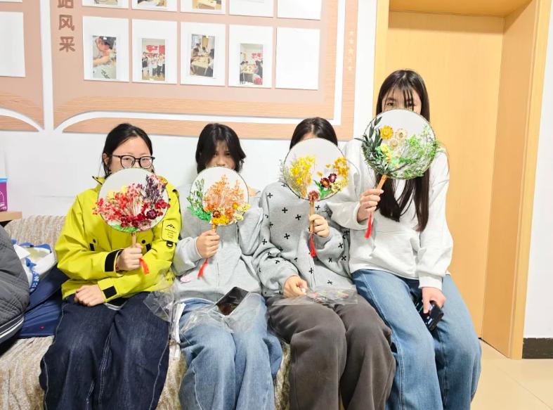 当素扇遇上繁花,当传统邂逅创意,一把把精美绝伦的永生花团扇惊艳亮相。同学们手持自己的作品合影留念,用镜头定格手作的喜悦与春日的美好。