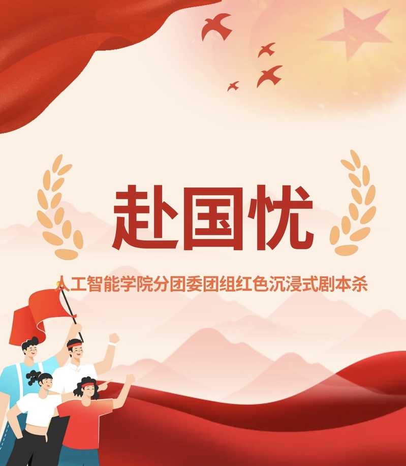 ⼈⼯智能学院分团委团组,倾情呈现12⼈新⼿友好红⾊剧本杀《赴国忧》。这不是寻常桌游,你将化⾝抗⽇志⼠,于暗流之中守情报,于危难之间护⼭河。