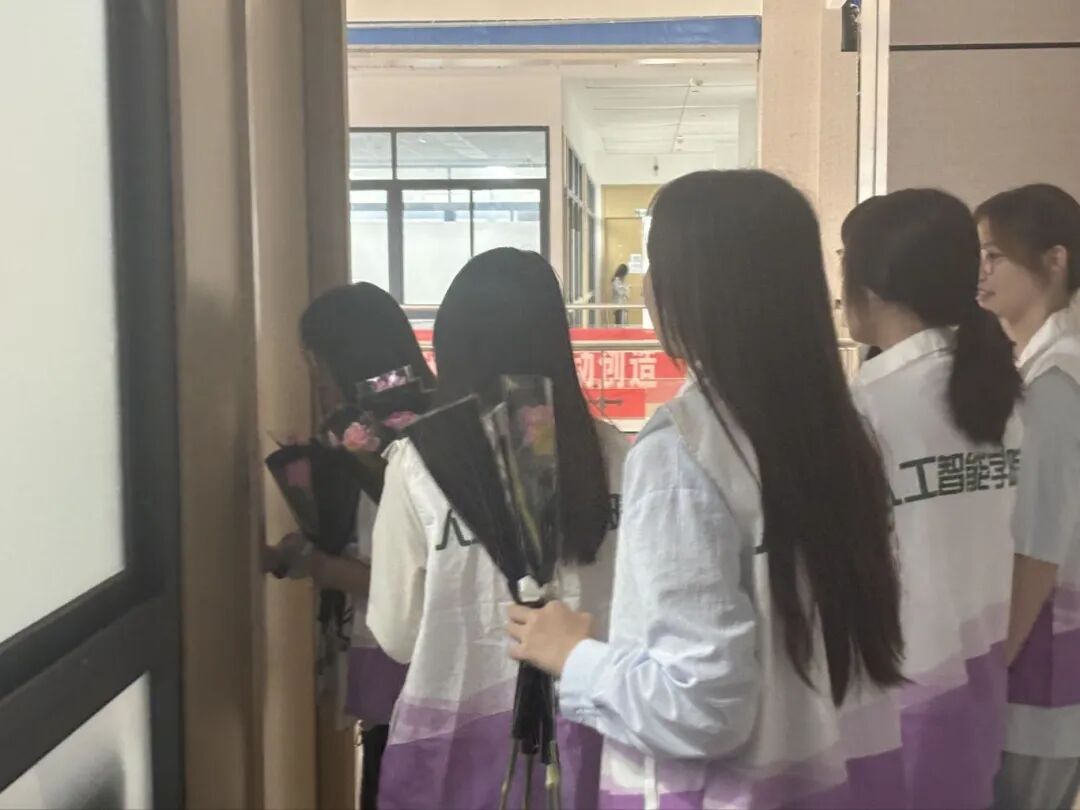 在这个特别的日子里,人工智能学院团组织精心策划了“献花传情、清扫暖心”主题活动,组织学生们用实际行动传递对恩师的真挚祝福。活动当天,志愿者们早早集合,手持提前精心挑选的鲜花大家有序前往各办公室,面对正在忙碌的老师,主动停下脚步,双手递上鲜花,轻声道一句“老师,教师节快乐!您辛苦了!”。老师们接过鲜花时,脸上纷纷露出惊喜又温暖的笑容,办公室里瞬间充满了鲜花的芬芳与温馨的氛围,简单的互动里满是师生间的温情。